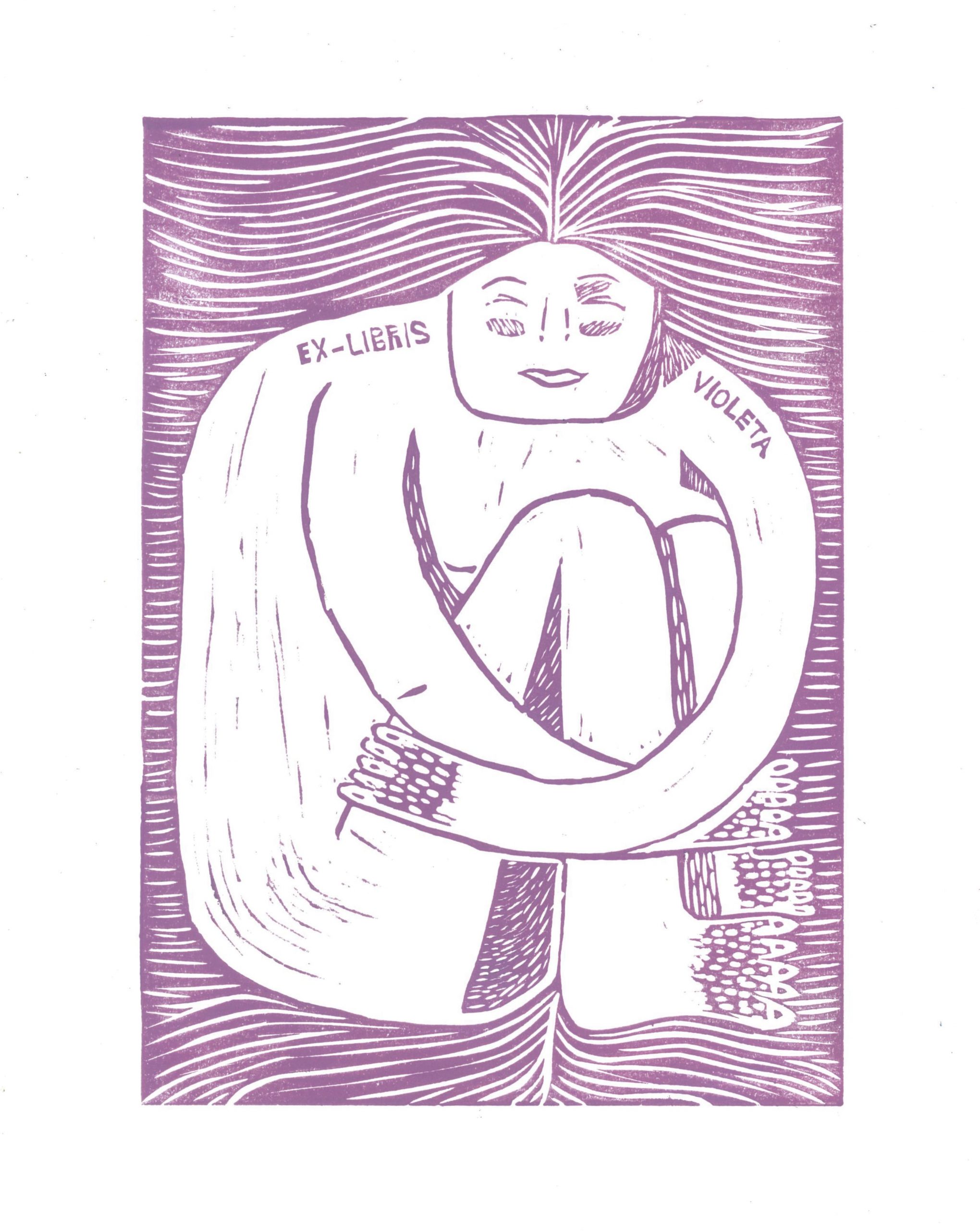Trabajo personal que consiste en la estampación de un ex-libris personal, una representación gráfica de mí misma.