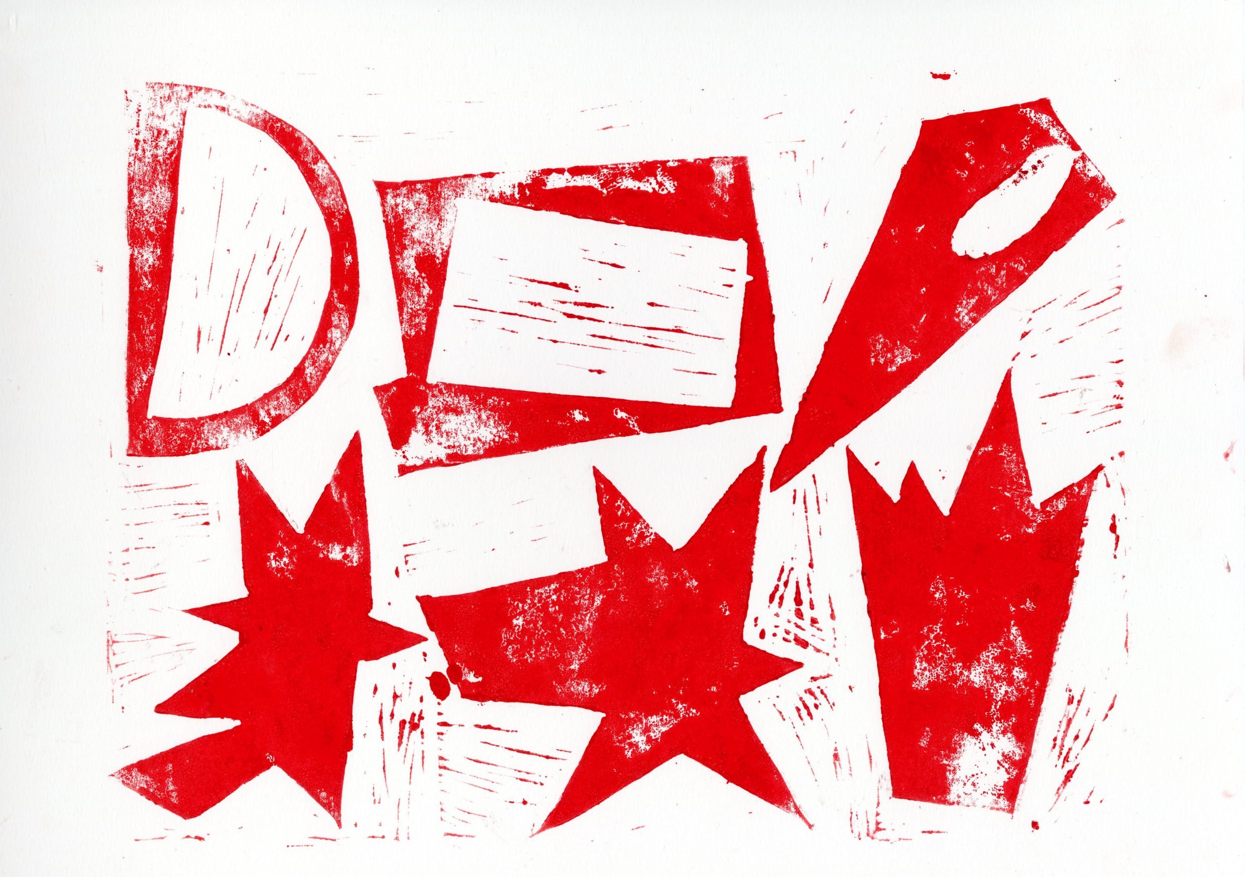 Realizamos todo el arte principal de la campaña con grabado en tablas de linóleo.